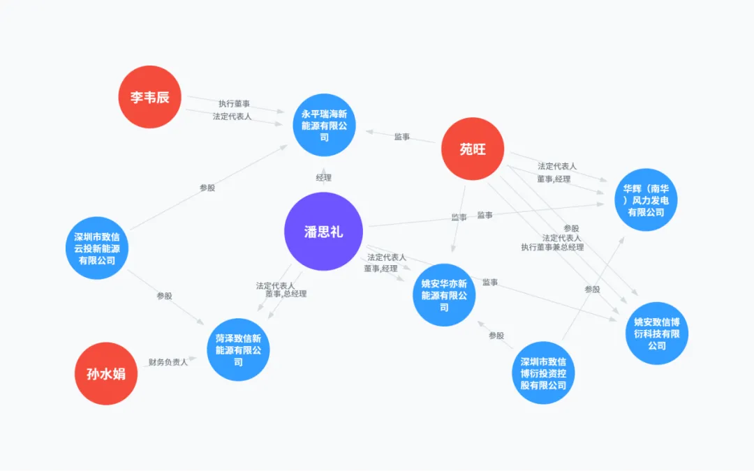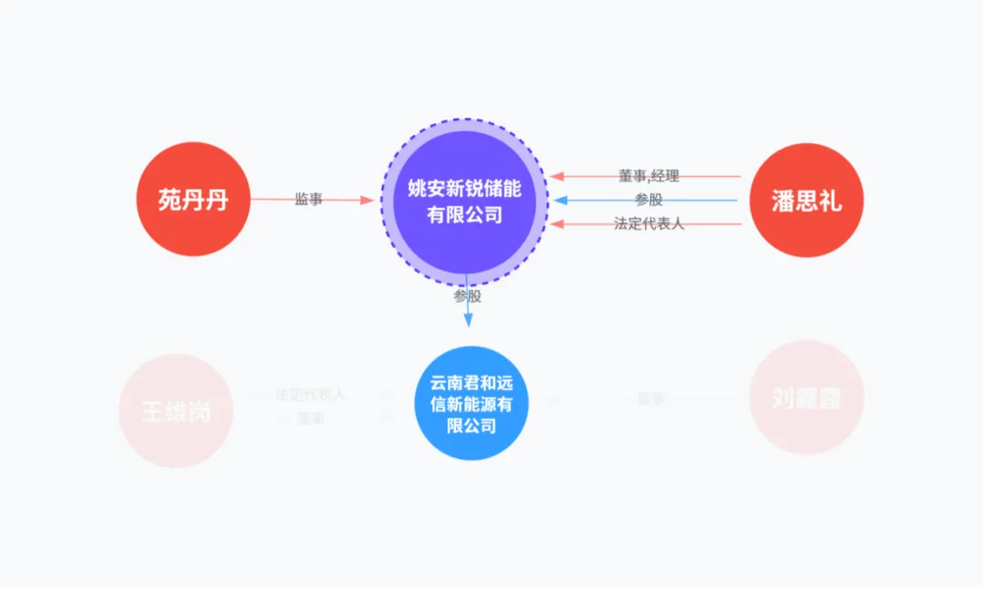 姚安新锐由潘思礼100%控股,潘思礼同时在“致信博衍(王堉、张佳婧100%持股、远信储能的核心控股平台)”旗下多家公司担任董事、监事等职位,包括姚安华亦新能源、华辉风力发电、菏泽致信新能源、永平瑞海新能源等,他还是姚安致信博衍科技有限公司的高管。