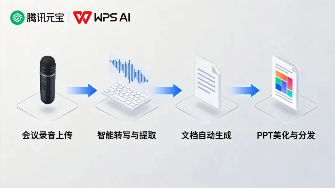 腾讯元宝+WPS AI打造办公超级流水线:从会议纪要到报告撰写的全流程自动化