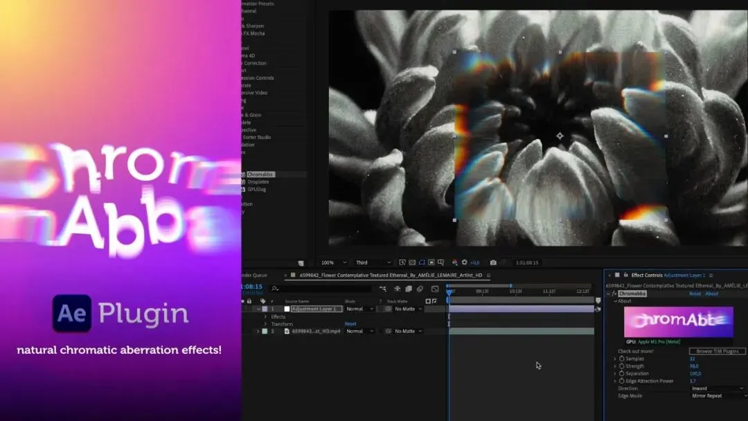 AE/PR/达芬奇插件:逼真视觉色差折射玻璃状扭曲抽象背景效果插件 Chromabba V1.3.4 (Win + Mac)