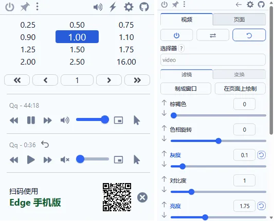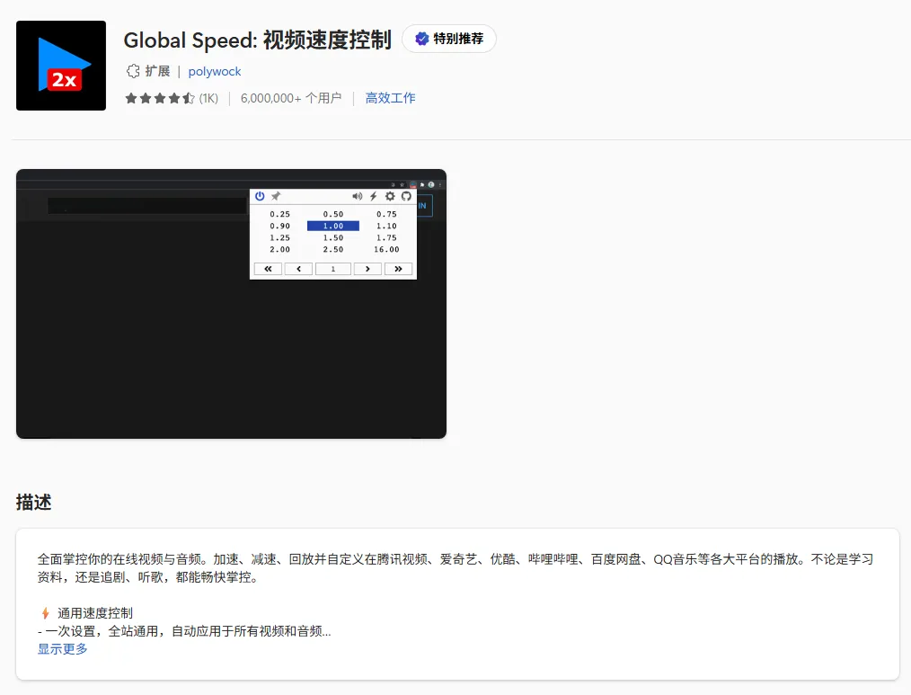 Global Speed这个插件可以全面掌控你的在线视频与音频,加速、减速、回放在线视频。不论是学习资料,还是追剧、听歌,都能畅快掌控。插件地址: