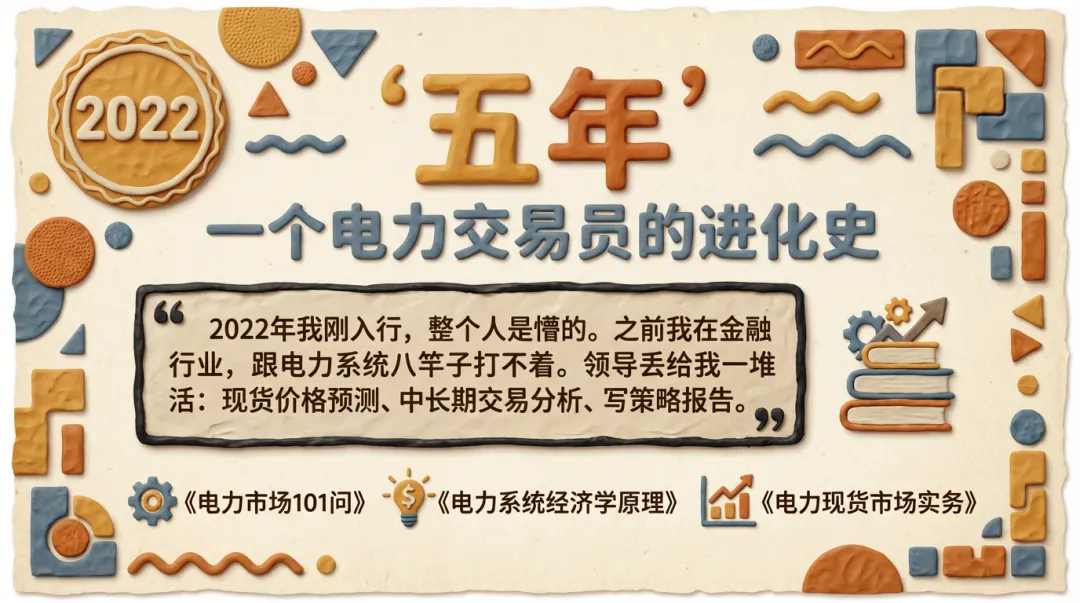 坦白说,2022年我刚入行的时候,整个人是懵的。之前我在金融行业,跟电力系统八竿子打不着,一个偶然的机会,市场上突然开始招聘电力交易员,抱着对一个新领域的好奇和厌倦了金融场的尔虞我诈,就这样开始投身于电力交易领域,然而一开始领导就给我设置了我觉得我完不成的难题:现货价格预测,中长期交易分析,写策略报告。我拿着材料看了半天,一个词都看不懂。