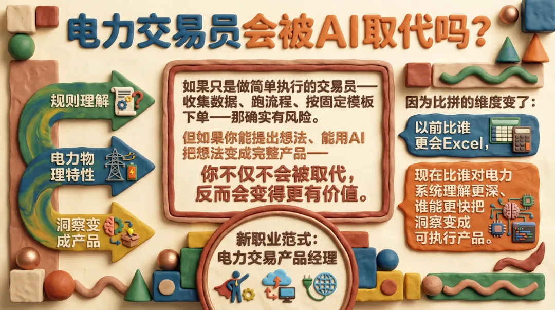 因为比拼的维度变了。以前比的是谁更会手动计算,谁更熟悉Excel公式。现在比的是谁对规则理解更深,谁对电力系统的物理特性更敏感,谁能更快地把自己的洞察变成可执行的产品。这是电力交易员,也是电力交易产品经理的新职业范式。