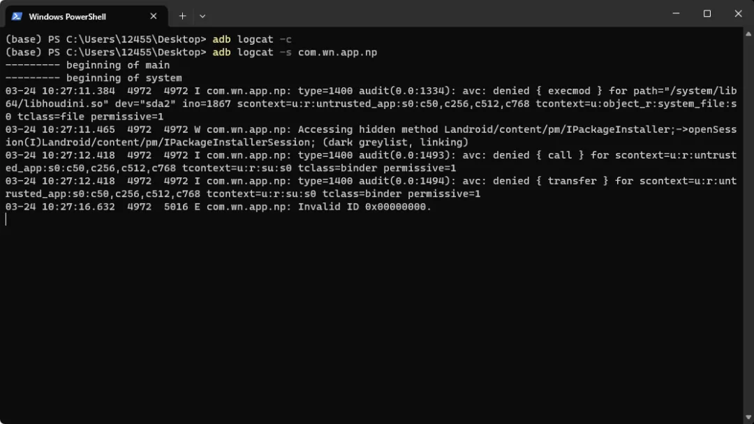 类似我们的日志 会保存在手机内部 我们可以通过 adb logcat 捕获出来