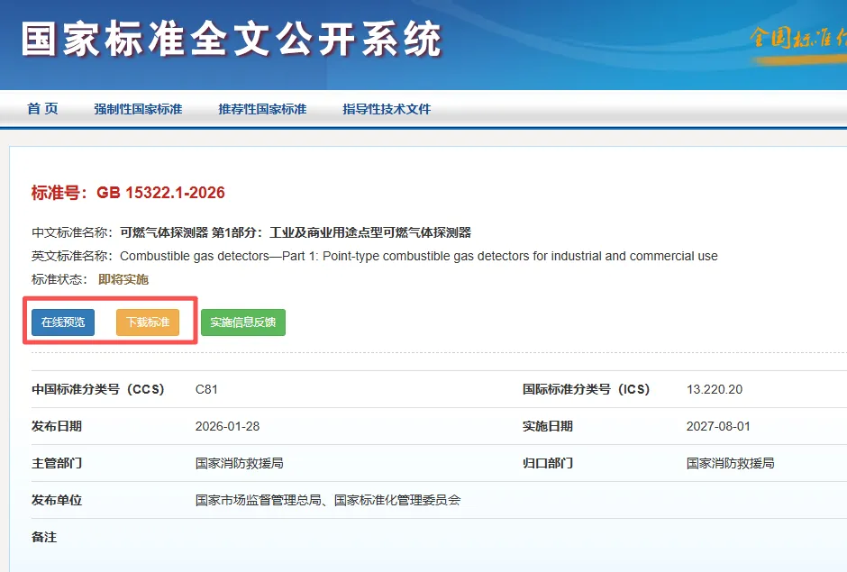 可下载 新规 可燃气体探测器 第 1 部分:工业及商业用途点型可燃气体探测器