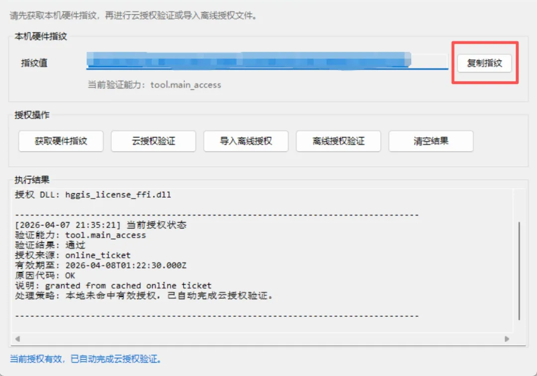 回到授权注册界面,点击“云授权验证”。验证通过后,今后使用过程中不用再做这一步。