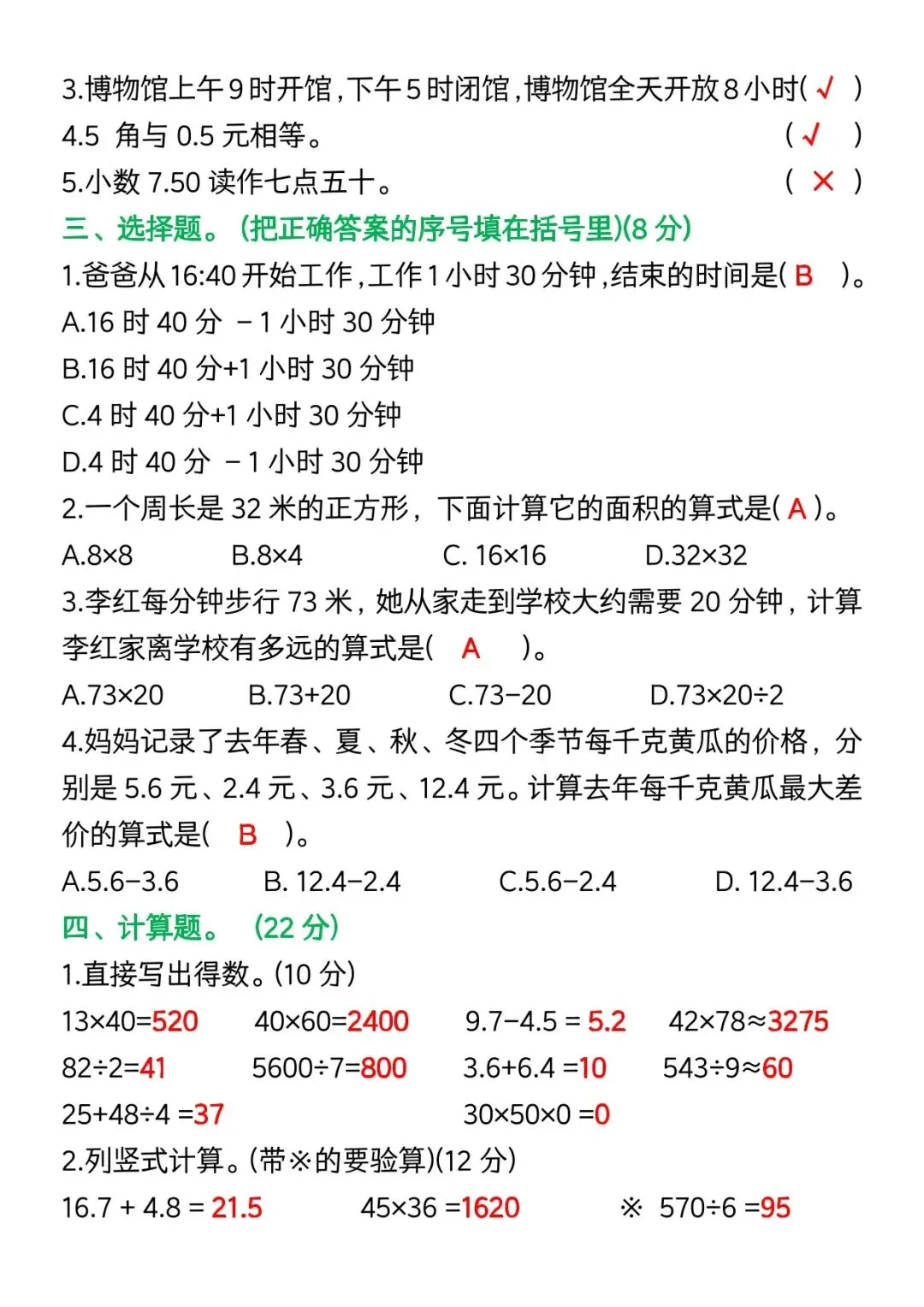 本资料专为三年级下册数学期中复习打造,精选除法、两位数乘两位数、面积、小数的初步认识、位置与方向五大核心模块的高频易错题,覆盖计算失误、单位混淆、概念理解偏差、审题不清四大典型问题。配套错题原题 + 错误解析 + 正确思路 + 变式练习,可直接打印使用,是快速查漏补缺、纠正错误、冲刺期中高分的必备复习资料。