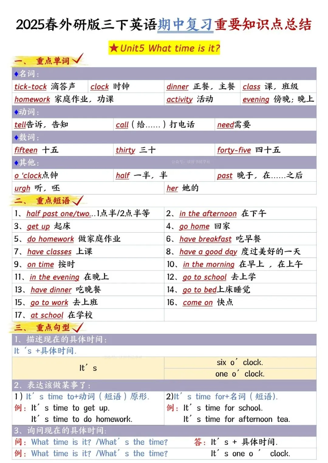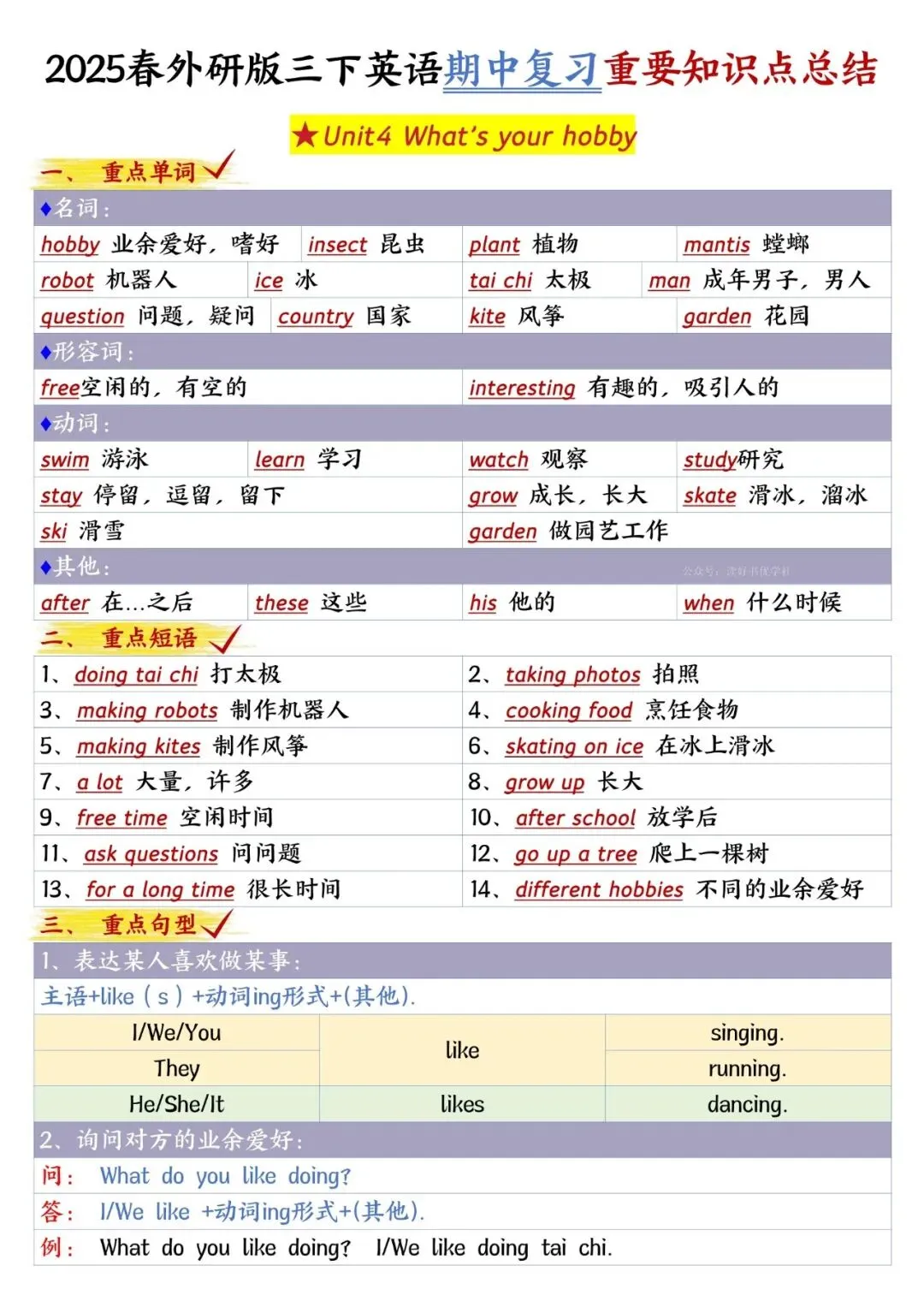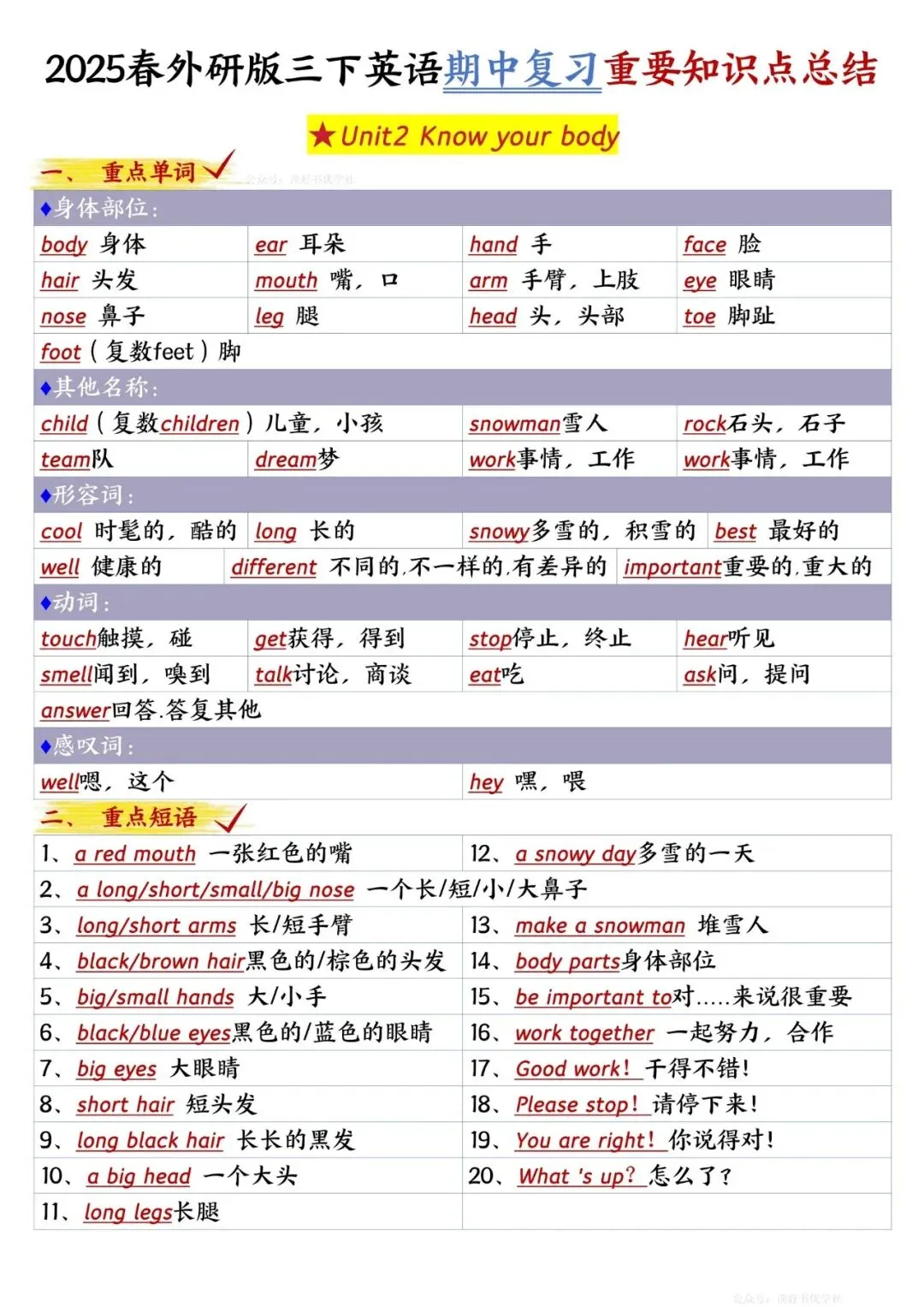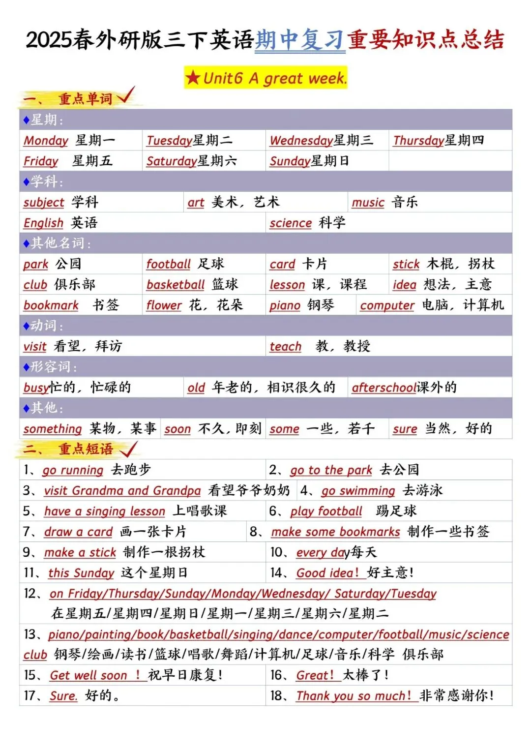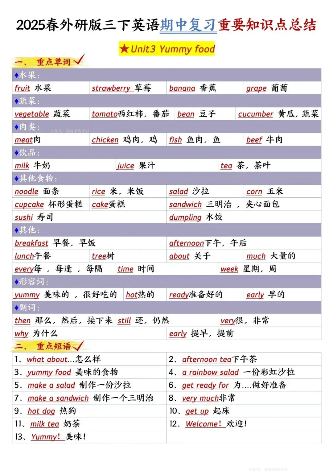 可下载丨三年级下册英语外研期中知识清单,电子版可打印