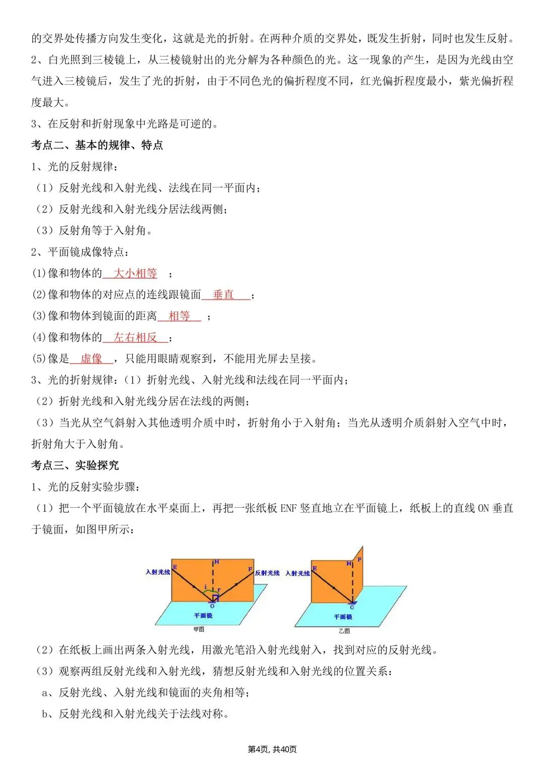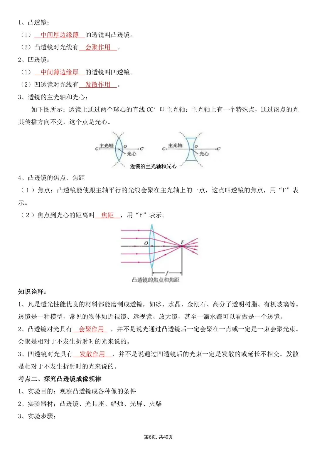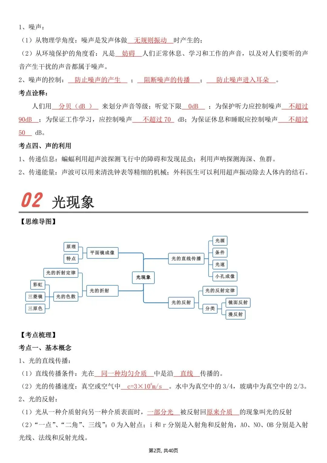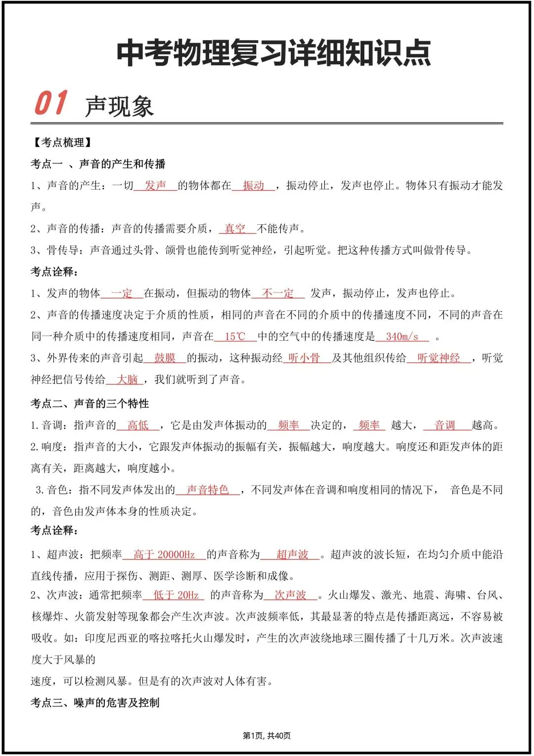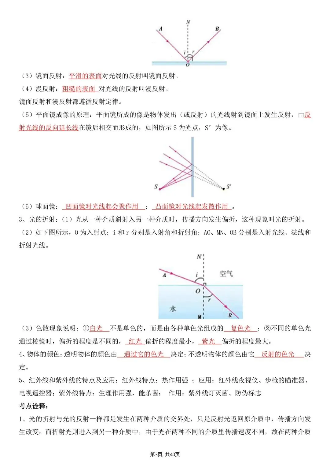 2026中考物理复习详细知识点梳理(电子版可打印)