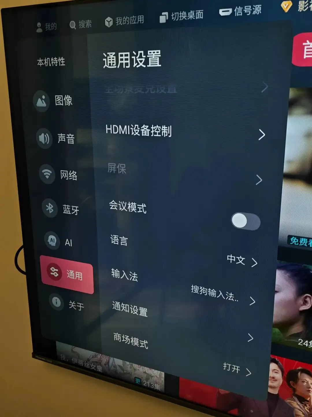 2. 找到 通用设置 → 商场模式(部分型号叫“展示模式”)