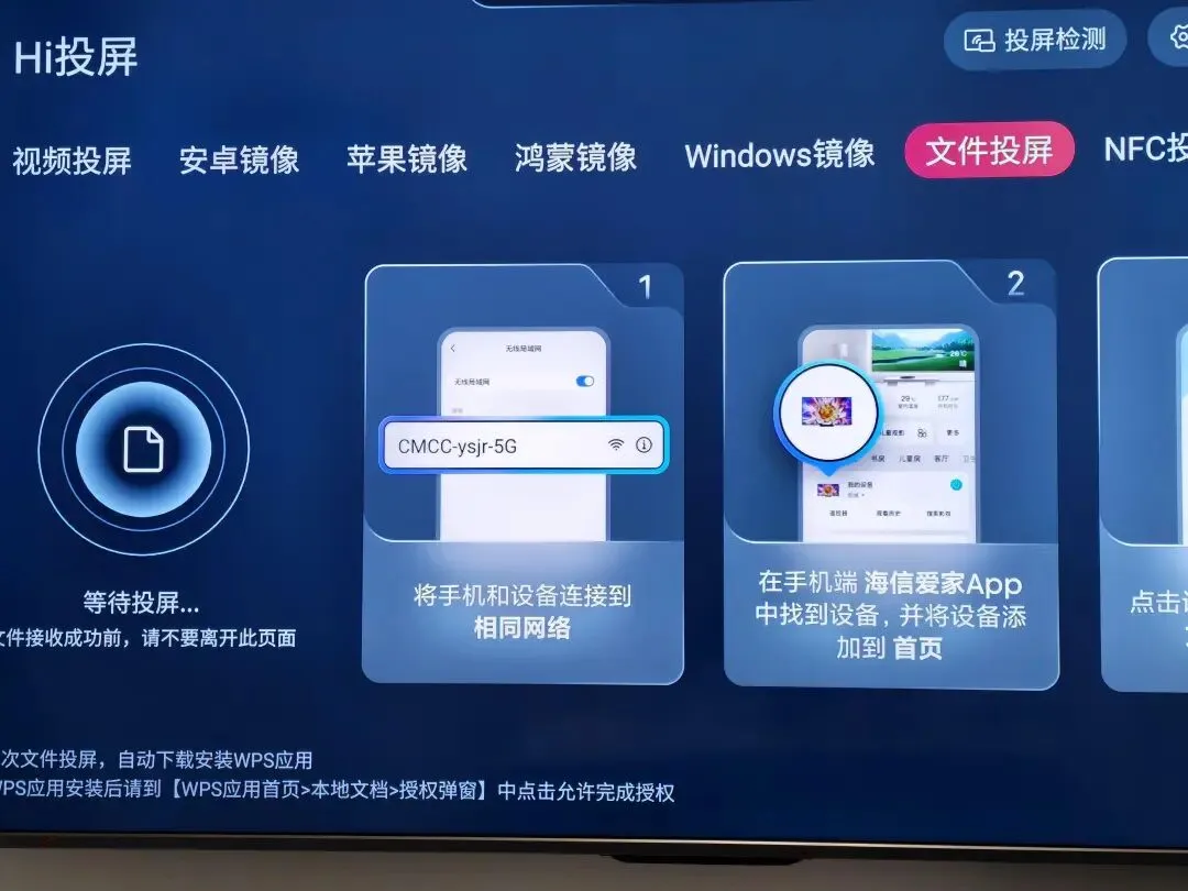 1. 手机和电视连同一个WiFi,同时检查WiFi名称是否一致