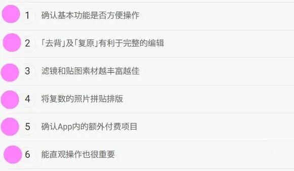 不管是哪一款照片编辑APP,操作是否直观都是非常重要的一点,毕竟使用时若需要复杂的步骤,对于没有专业知识的用户来说就会变得十分困难。 当中尤其推荐只要用手指直线滑动或是点击画面等,就能直接操作的编辑App,且照片编辑的新手更应务必事先确认操作是否简易。