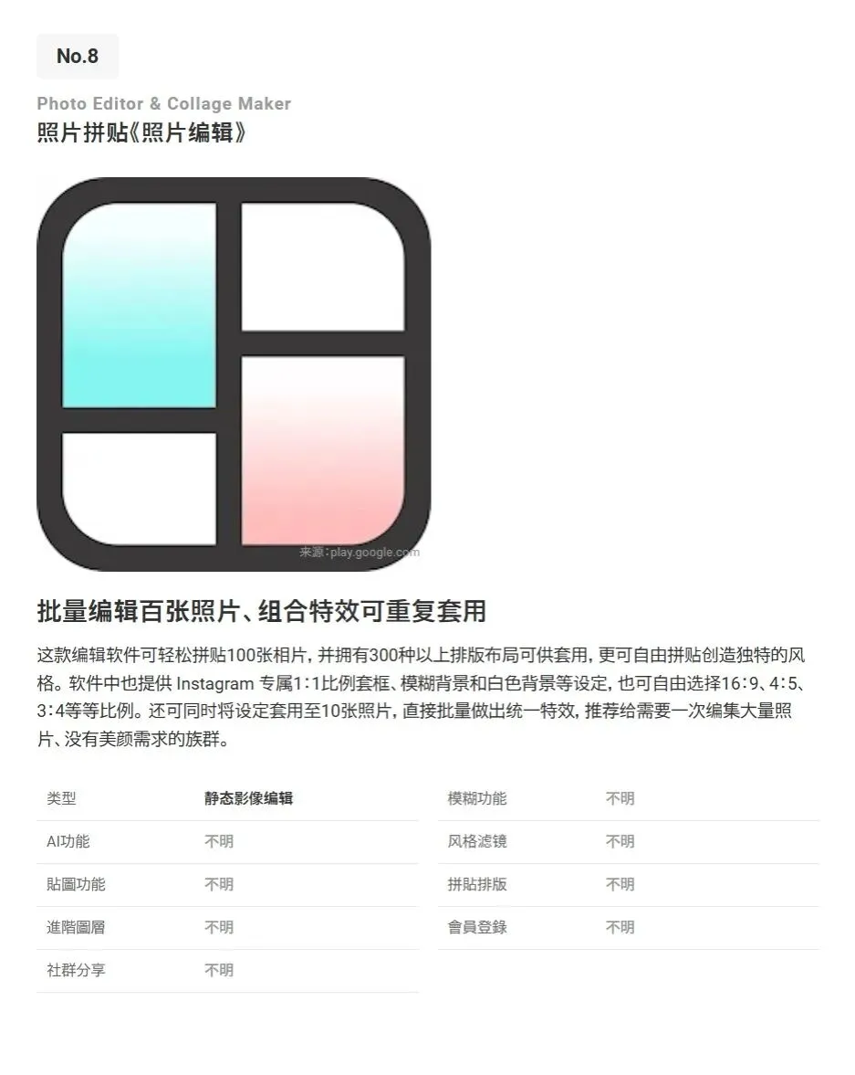 「照片编辑App」的用途变化多端,比如说添加可爱的怀旧风滤镜及手写文字,或用贴图遮盖脸部和马赛克模糊资讯等等,因此可说是想要在 Instagram 等社群媒体上传美照或食物照时不可或缺的工具。 但众多 App 中每一款又有着各自不同的取向,从重视可爱风到加工成艺术风格等皆有,到底该用甚么标准来选择不免令人迷惘。