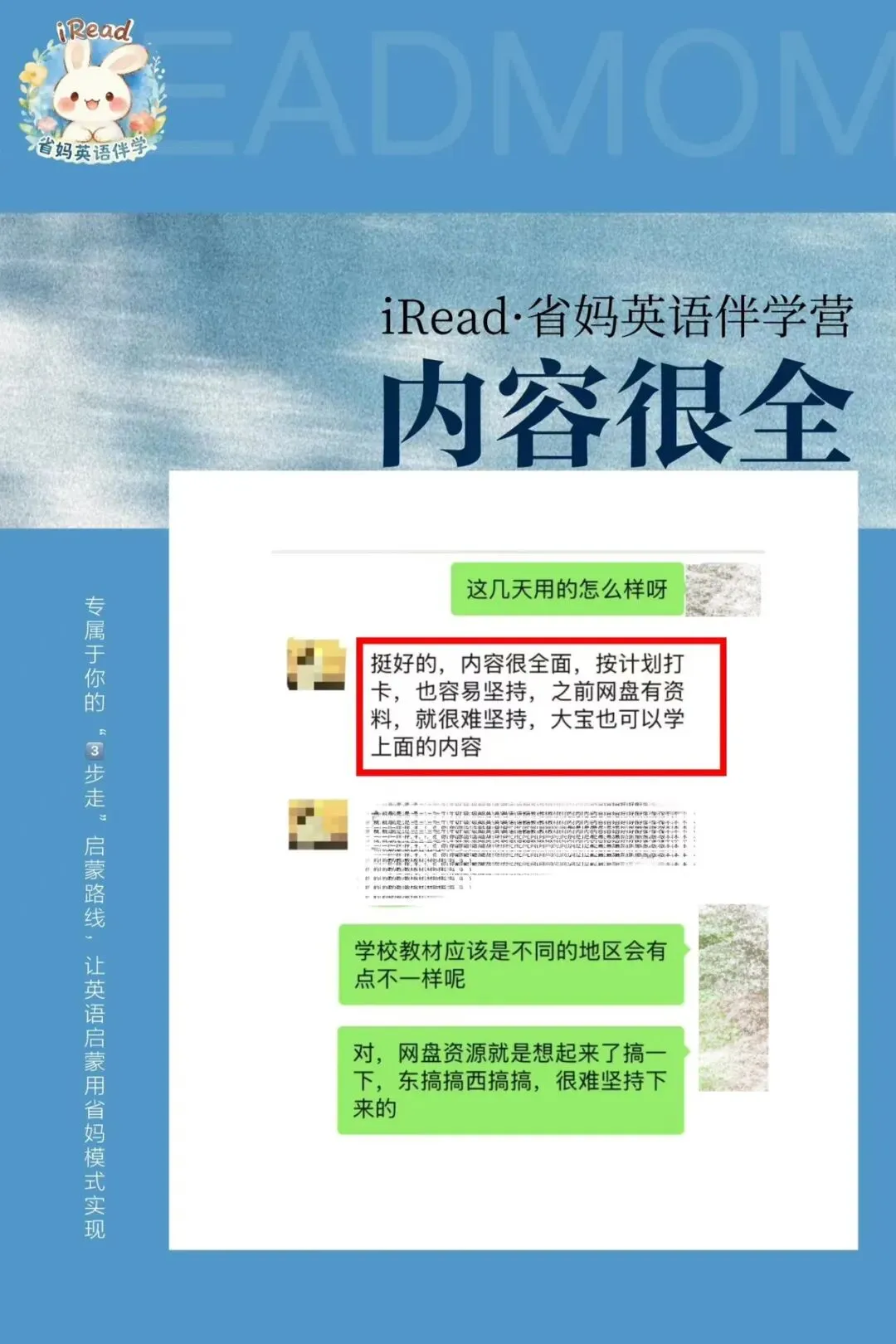 有妈妈反馈说,内容很全。不仅小宝可以用,大宝也可以学上面的内容。现在每天跟着打卡很容易坚持。