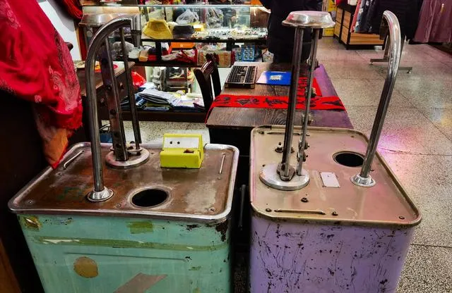 店里角落的铁皮箱子立着两根亮管,叫售油机,小时候去粮站排队买油,售货员一点头,把壶口伸进下方,按着把手,一下准准打出半斤或一斤菜油,柜台上有倒数的度量盘,一盒盒票贴在玻璃上,小孩提着油瓶站在队尾,闻着油香,回家饭菜都特别香,现在超市一桶桶油随便买,这种老售油机基本没人见过了。