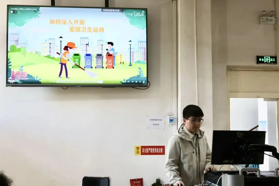 刘金璋带领全体参会人员共同观看“弘扬爱国卫生新风 共建文明健康校园”主题视频,并部署学生日常管理工作:针对作息不规律、宿舍内务不达标等问题提出整改要求,引导同学们养成健康生活习惯,主动维护校园环境整洁,展现良好风貌。
