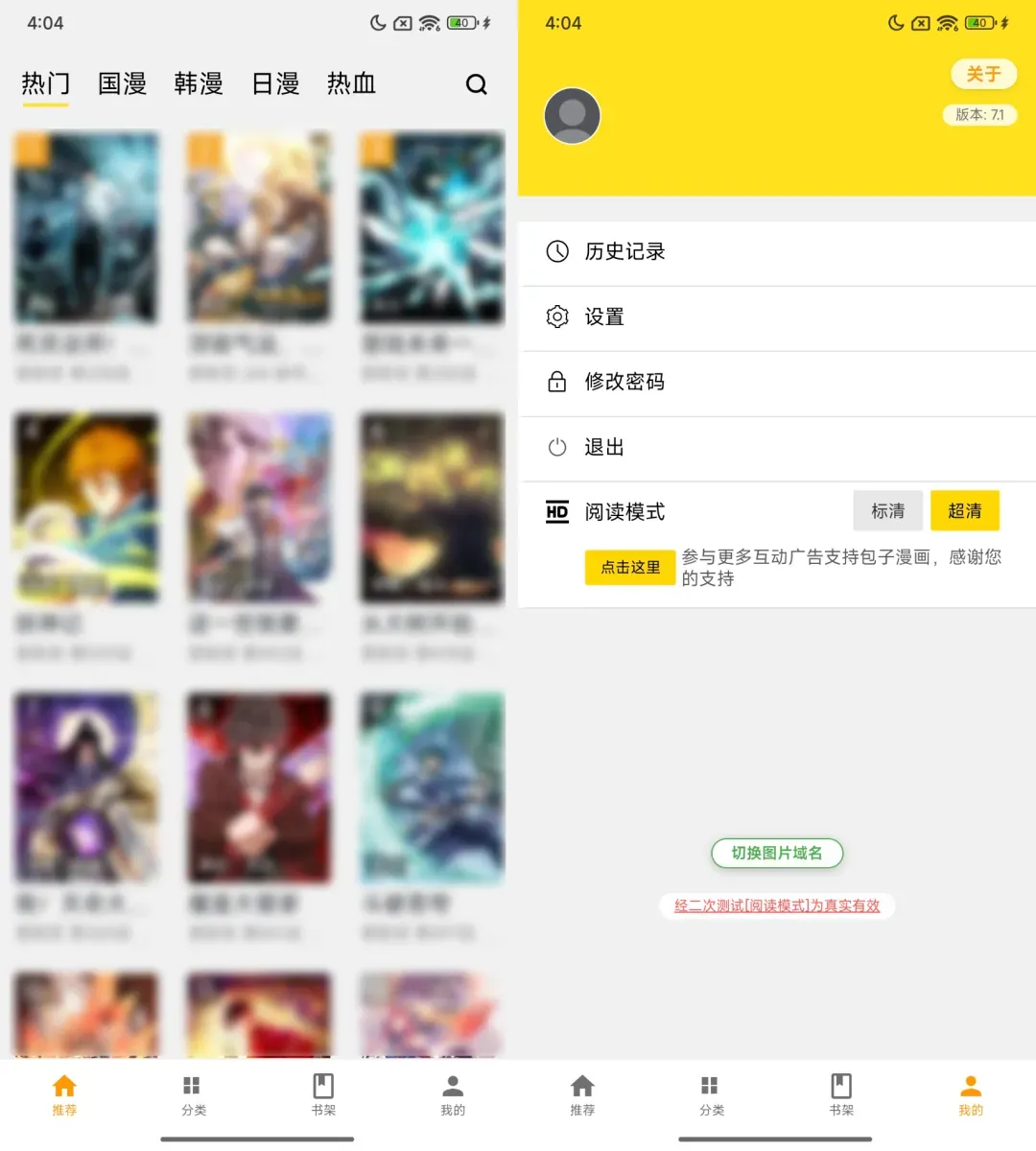 原版要看完广告才能解锁的超清画质,这个版本直接默认开启,画质清晰不模糊,看漫画的体验感直接拉满,不用再为了画质被迫看冗余广告。