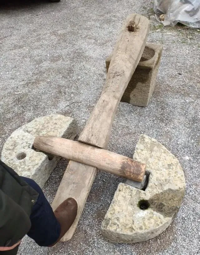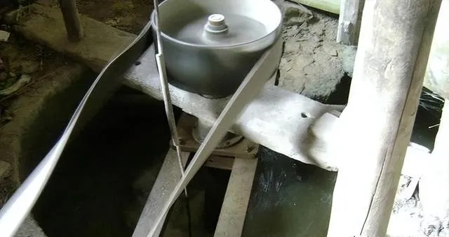 这个造型复杂一点,用水拉着走的叫水车舂米机,木头搭架子,外头接个水道,水一引,水轮带着杠翁翁作响,碗里的米就震出来了,操作的人其实很清闲,小伙子坐在水道边甩甩腿,水大了动得快,小了还得帮着舀两瓢补回去,我娘常说现在省事多了,以前光用脚踩能踩掉半条裤腿。