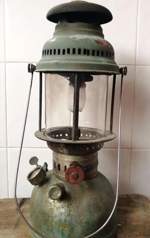 汽灯在那个年月可是稀罕货,压气、灌煤油,打火时一个瓷头罩住,点起来呼呼响,灯罩一扣,全屋都亮了,手感冰凉,劲大光亮,是队里宴席或是大会用的大件,爸妈总告诉我,“别乱碰,丝网罩贵着呢”,玻璃一碎就心疼不已,这个家伙动静大,用的人少,见过的不多。