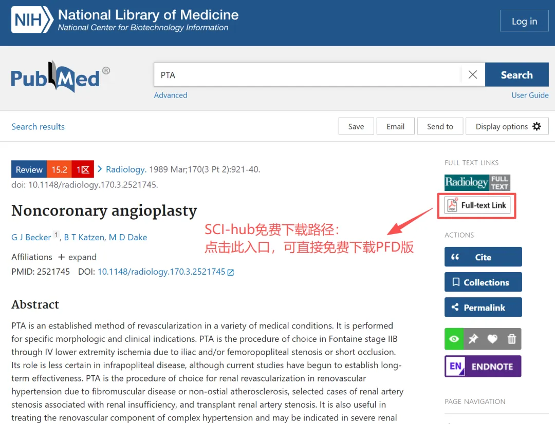 完成以上设置后,在PubMed检索结果中,每篇文献的右侧就会出现基于Sci‑Hub路径的文献下载链接,点击「Full-text-Link」即可转跳至Sci‑Hub,直接下载PDF全文。