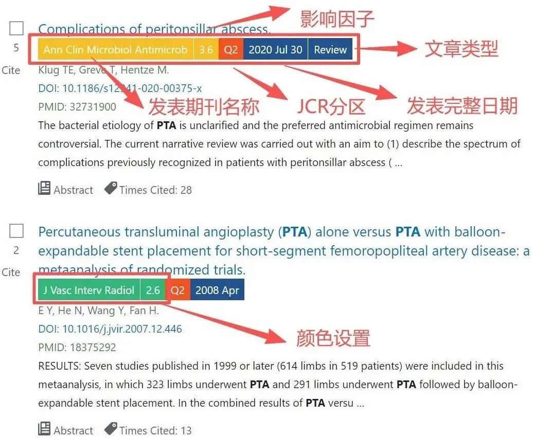完成安装和设置后,在PubMed中进行任意检索,每篇文献下方就会自动显示: