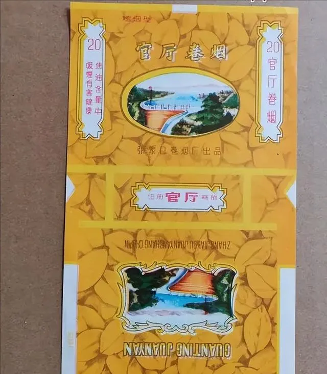 这个黄灿灿的包装叫官厅卷烟,早些年张家口专出的,烟盒正中画着一座大坝和一段弯弯的公路,远处青山,近水流,设计里还真见点年代气息,爷爷说上世纪七八十年代那会,谁家里办事请客,饭桌上搁两盒官厅卷烟是很体面的事,味道醇厚不呛,桌上的大哥们各抽各的,一圈人烟雾缭绕,招呼声里全是人情味,现在想请人吃饭,没人还抽这个了。