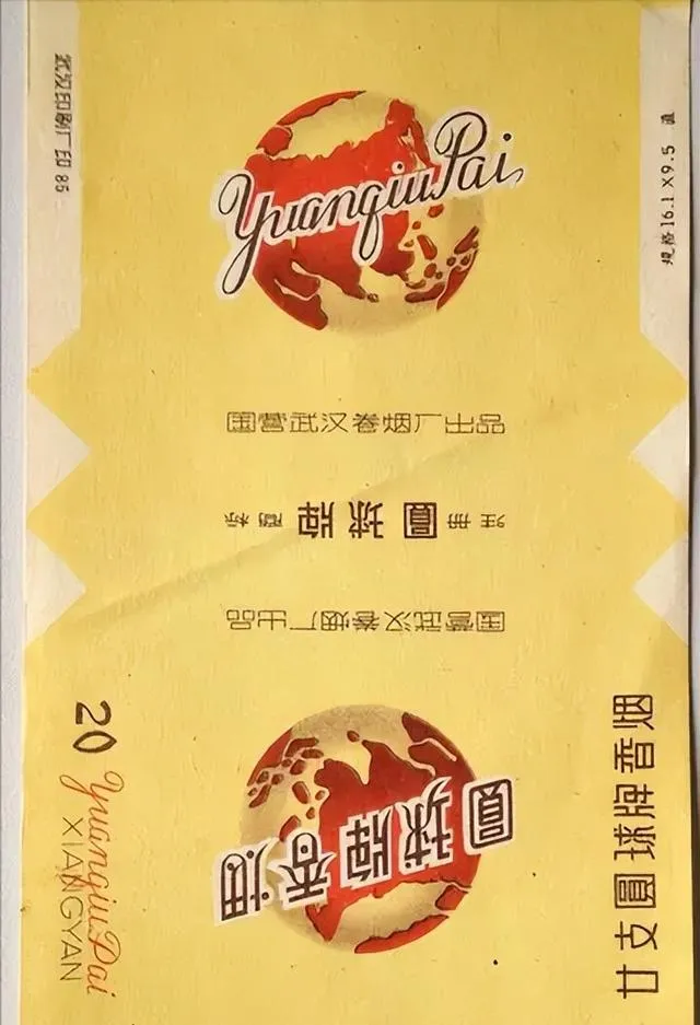 淡黄底子,印着一颗地球,这就是圆球牌香烟,估计没几个人抽过,武汉的产物,别处碰见基本算稀罕货,外观新奇,挺符合当年讲求国际化的口号,内容物嘛,就是烟丝结实不飞灰,抽起来倒没啥特别,但是能装门面。