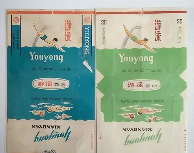 烟皮上的画是两个游泳的人,左一包蓝色右一包绿色,这个叫游泳香烟,湖北卷烟厂出的小众货色,谁抽它都得说一句“这烟版面倒是新奇”,小时候总在烟盒背后儿学着画,抽烟倒是不敢,盒子捡了不少。