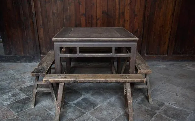 四方方一个桌子,四条长凳往四边一摆,正好能围一圈,过年热闹,桌上一锅菜八个人,谁抡筷子都方便,八仙桌一端上,场子就敞亮,农村大事小事都少不了它,现在亲友聚会吃饭大多上圆桌转盘,这种朴素的大方桌已经越来越稀罕了。