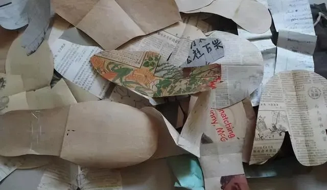 这一堆用旧报纸剪下的鞋底鞋帮,就是做布鞋前先打的鞋样,过去图方便,家里女人都得会剪会画,鞋样一铺上布,划好轮廓下剪刀才合脚,妈妈说那时候过日子都得自己琢磨,孩子脚大得快,鞋样随时都得变,现在商场鞋样齐全,花样多得挑花眼,这种手工活已经鲜有人提起了。