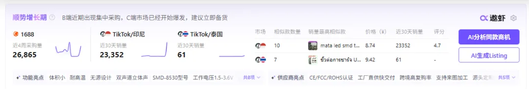 选品功能本身不算多新鲜,市面上各种选品工具一大堆。
