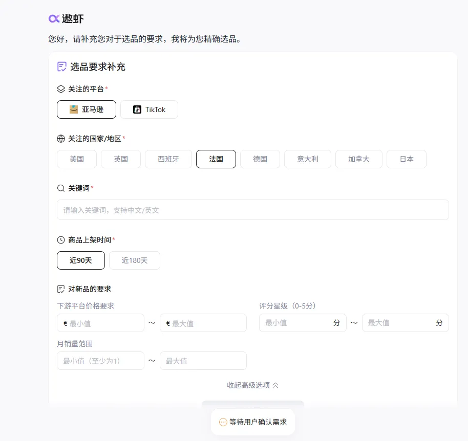 如果你刚入行,不知道怎么选品、怎么找供应商、怎么处理中文素材,遨虾的AI引导可以帮你快速上手。