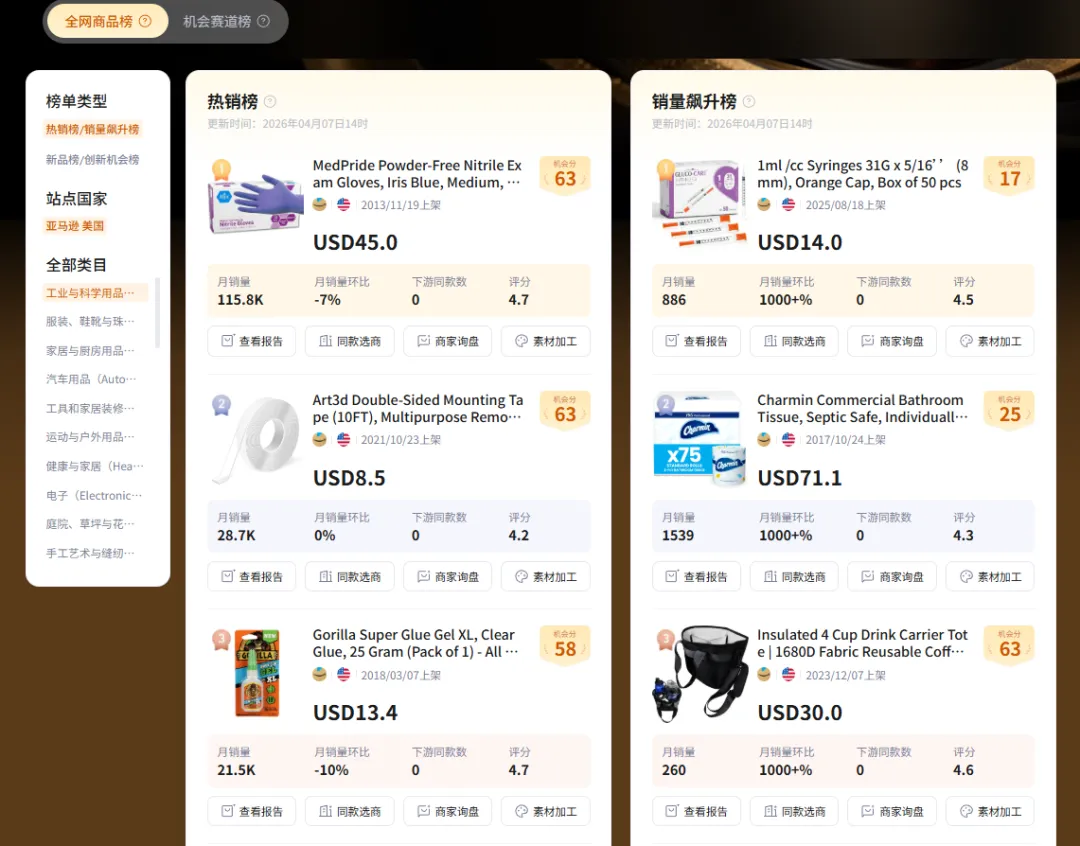 这个功能对于刚入行不知道怎么选品的新手来说,降低了选品的门槛。