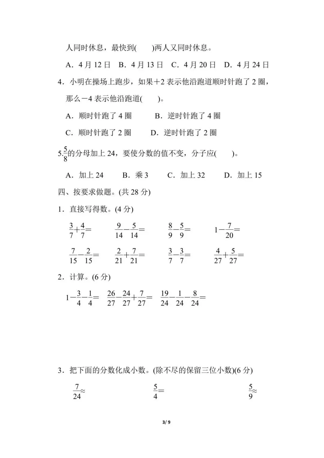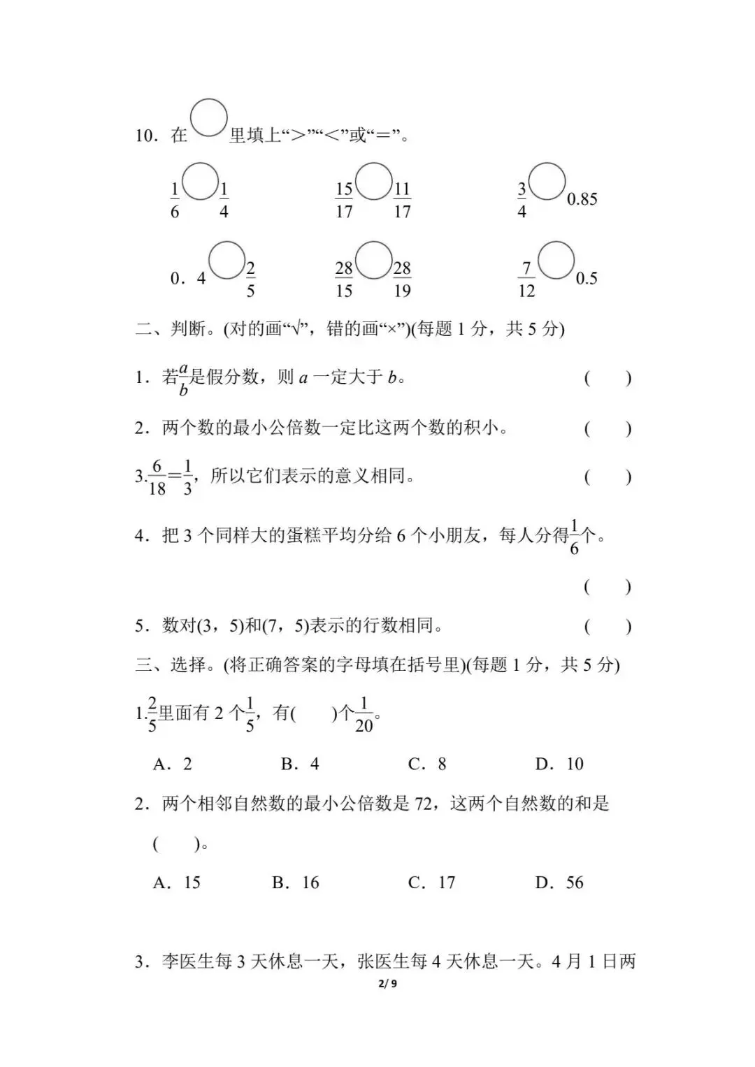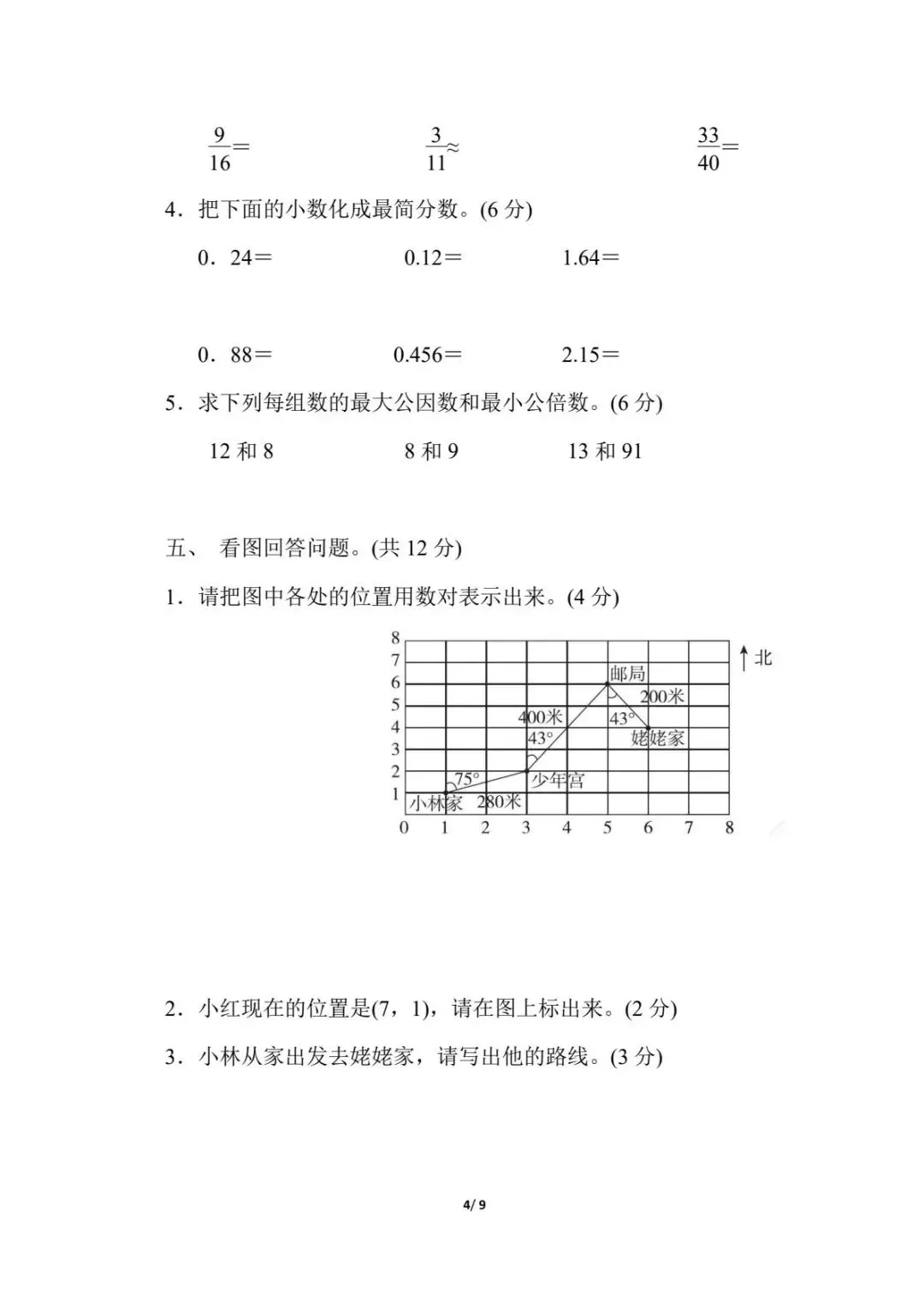 此卷高度贴合青岛六三制教材,精准抓取高频考点,像因数与倍数、分数加减法等关键知识一个不落,让孩子通过检测全面查漏补缺。