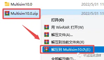 1.选中下载的压缩包,然后鼠标右键选择解压到”Multisim 10.0″(没有解压选项点这里)