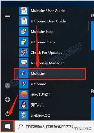 14.在桌面左下角的开始菜单中找到”Multisim“软件,鼠标左键拖拽到桌面上即可创建桌面快捷方式