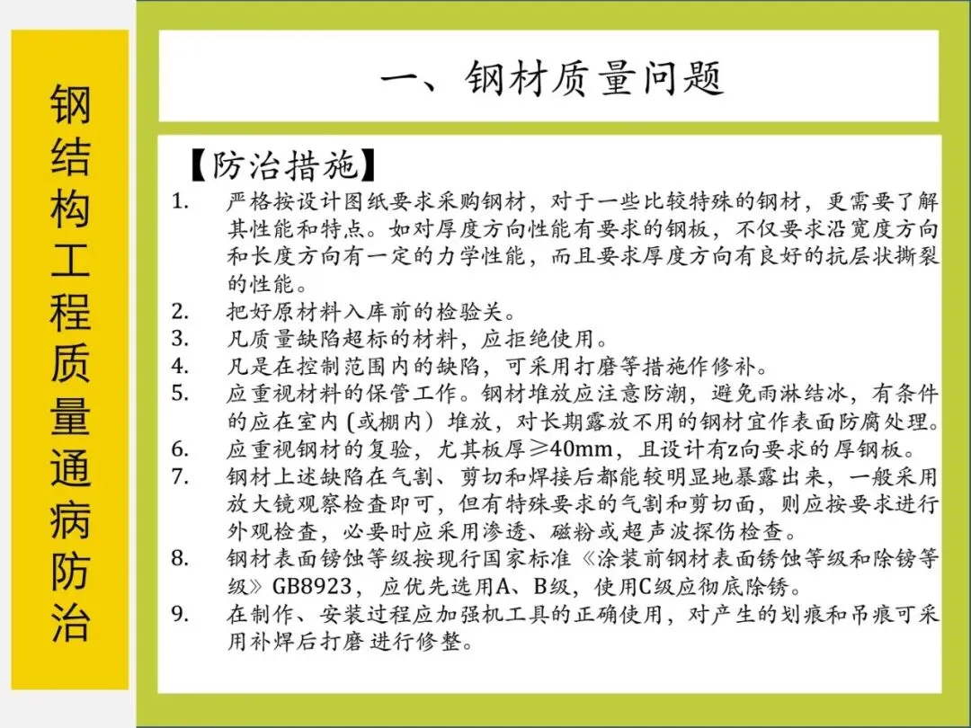 今日分享资料为:《建筑钢结构常见质量问题及防治措施》(PDF、可下载)