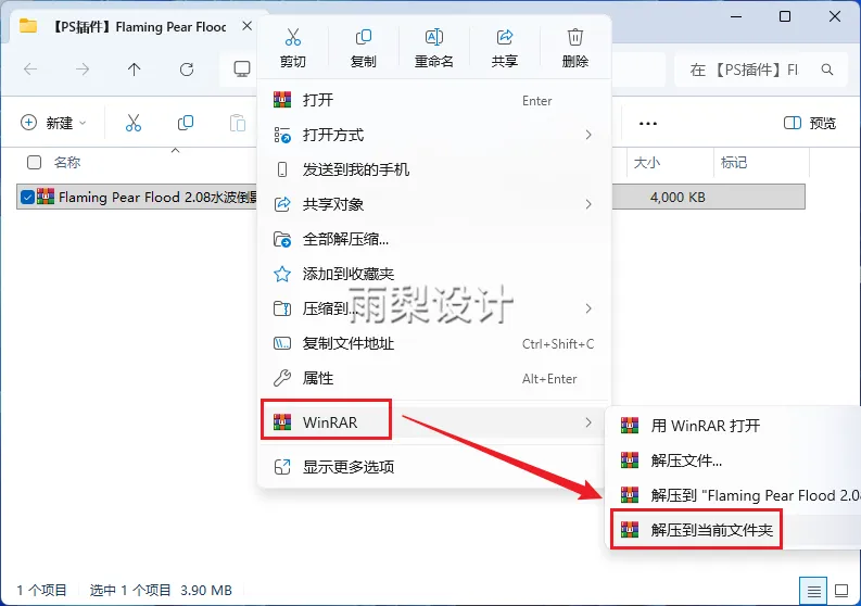 1.右键下载的插件压缩包,并【解压到当前文件夹】