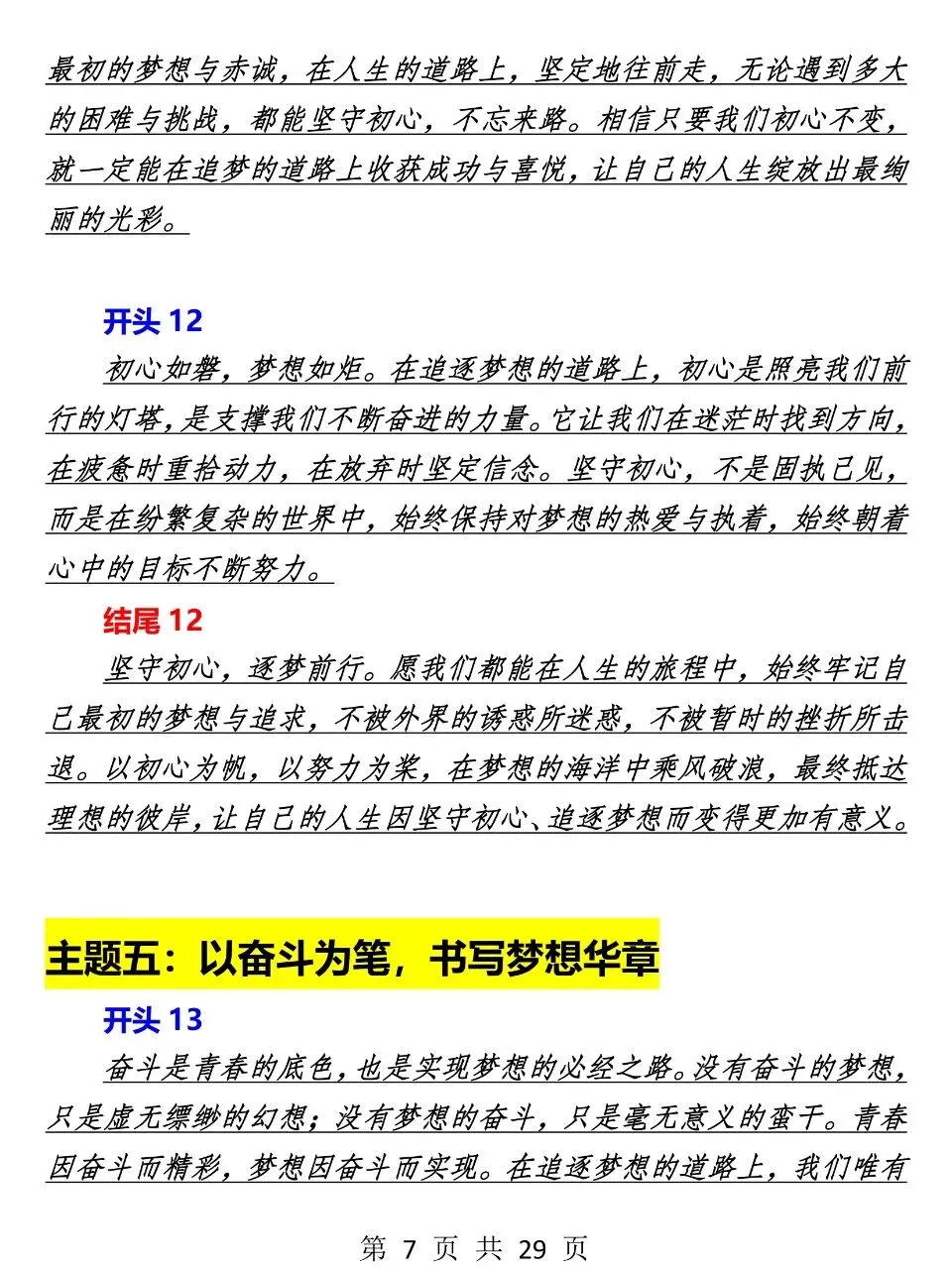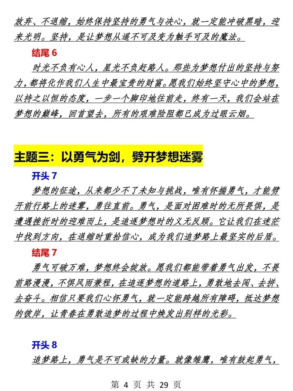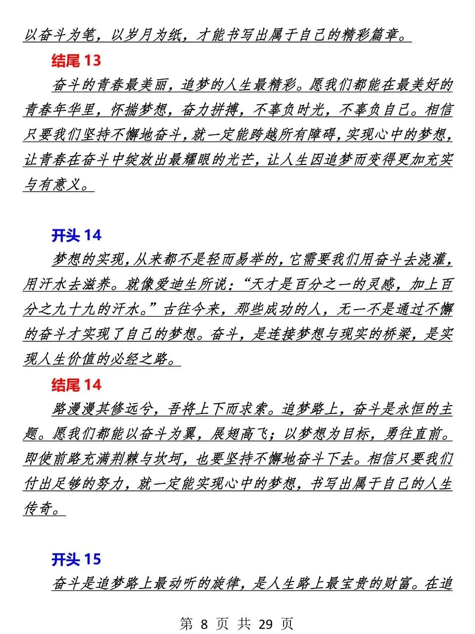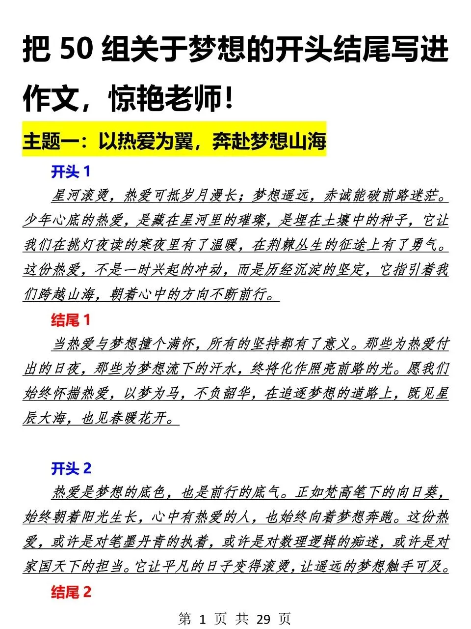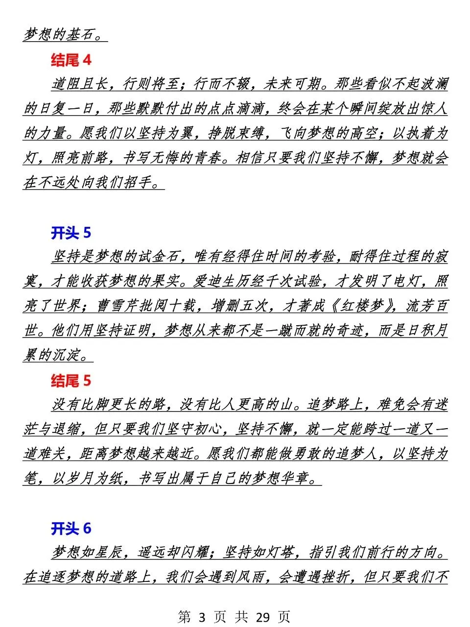 关于梦想的50组万能开头结尾素材汇总,可打印