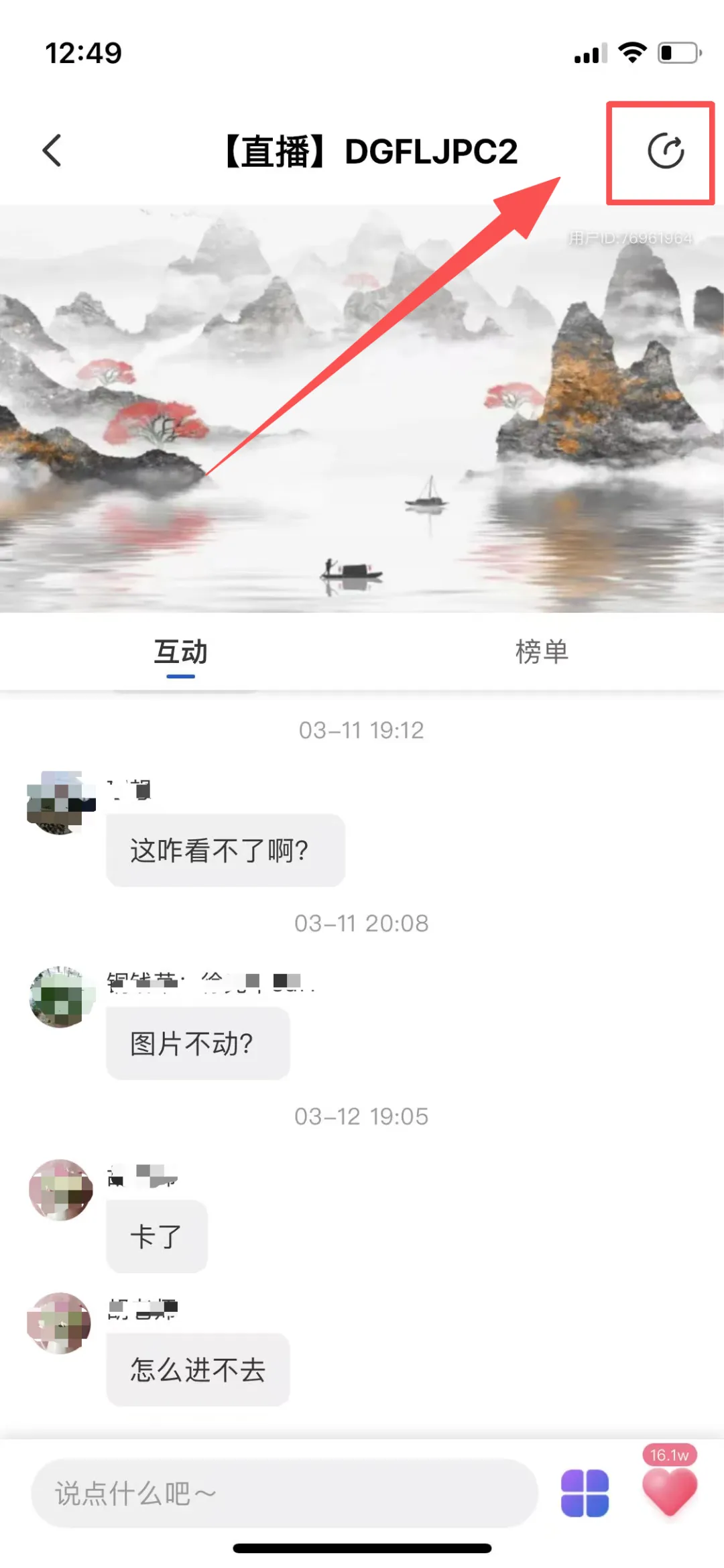 1.首先,进入后找到直播间右上方的分享图标,戳一下它(如下图)