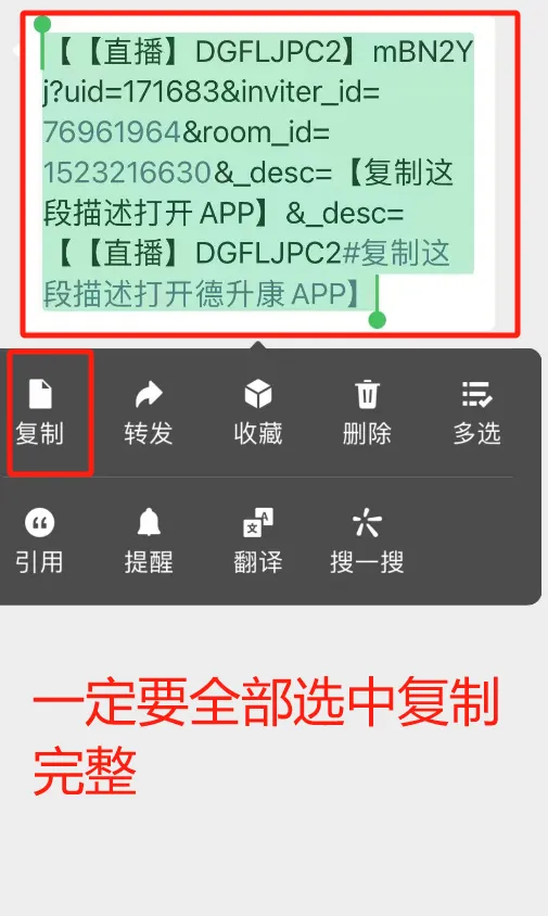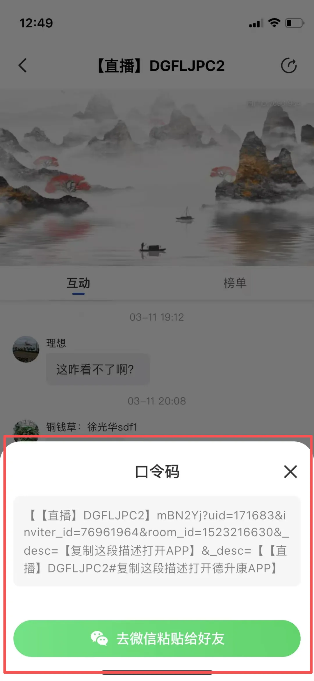 三、好友复制你分享的口令码,再重新打开德升康APP进入对应直播间