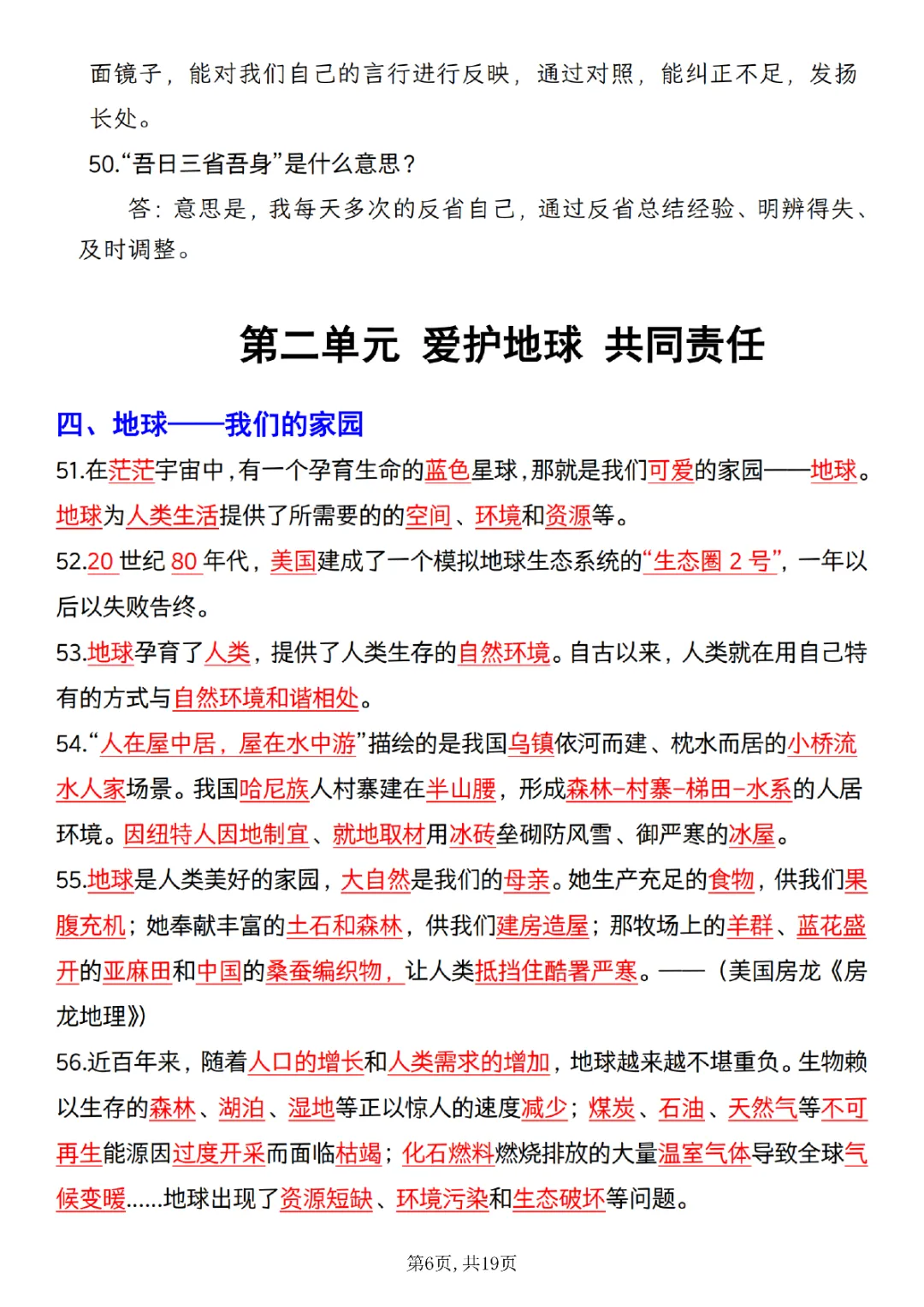 2026年六年级下册道法知识点汇总(电子版可打印)