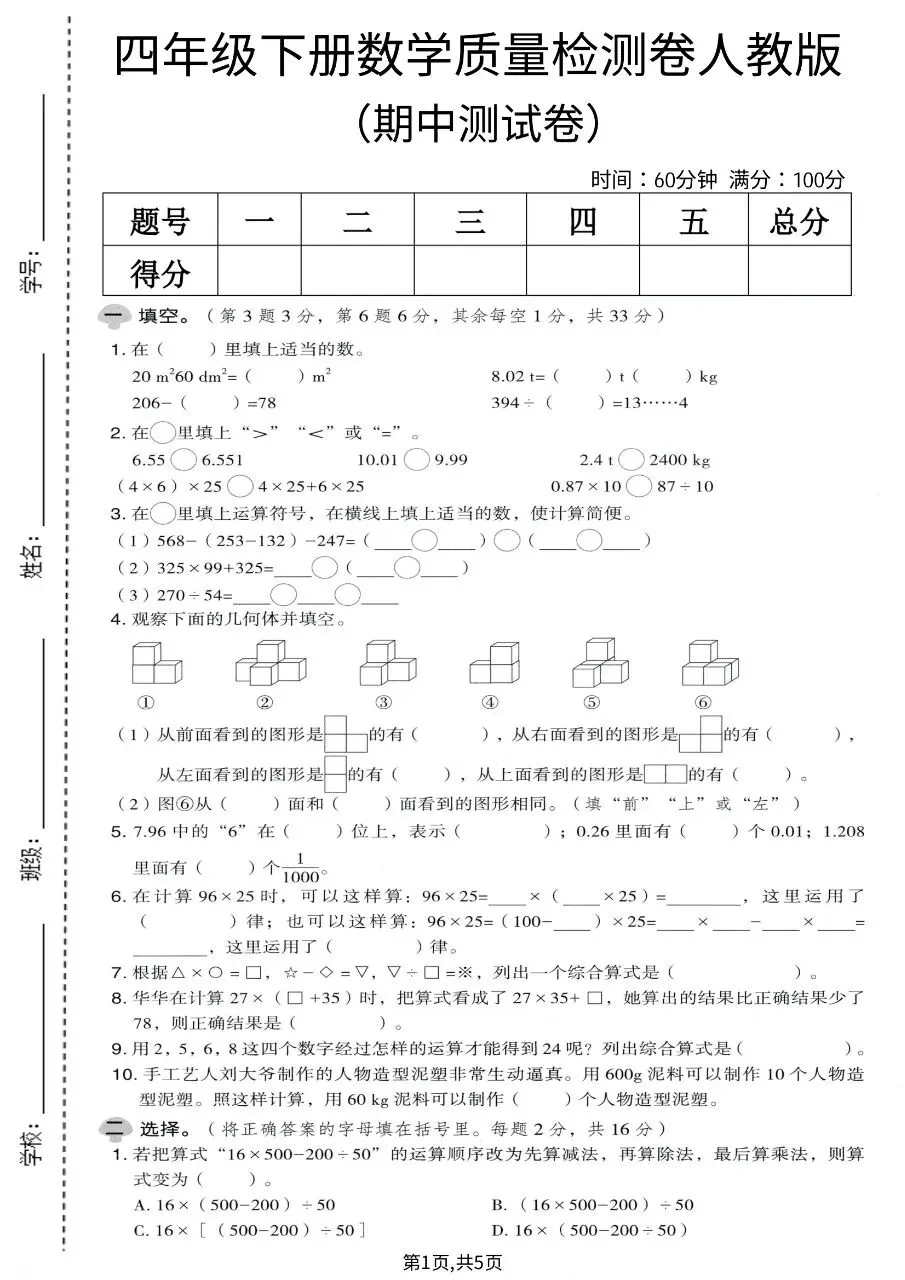 四年级下册数学|期中测试卷(附答案)(可下载打印) 小学资料每日更新,具体看完整PDF版本 (温馨提示:文末👇有完整电子版下载🔗) 新版四年级下册数学 期中测试卷(附答案) △因篇幅有限,只展示部分资料截图△ ↓↓↓ 领取完整电子版: ①:点一点右下角的“👍”和“❤️”,感谢🙏 ②:在公众号对话框回复:1059 资料合集:👇👇 小学学习方法 四年级下册语文 四年级下册英语