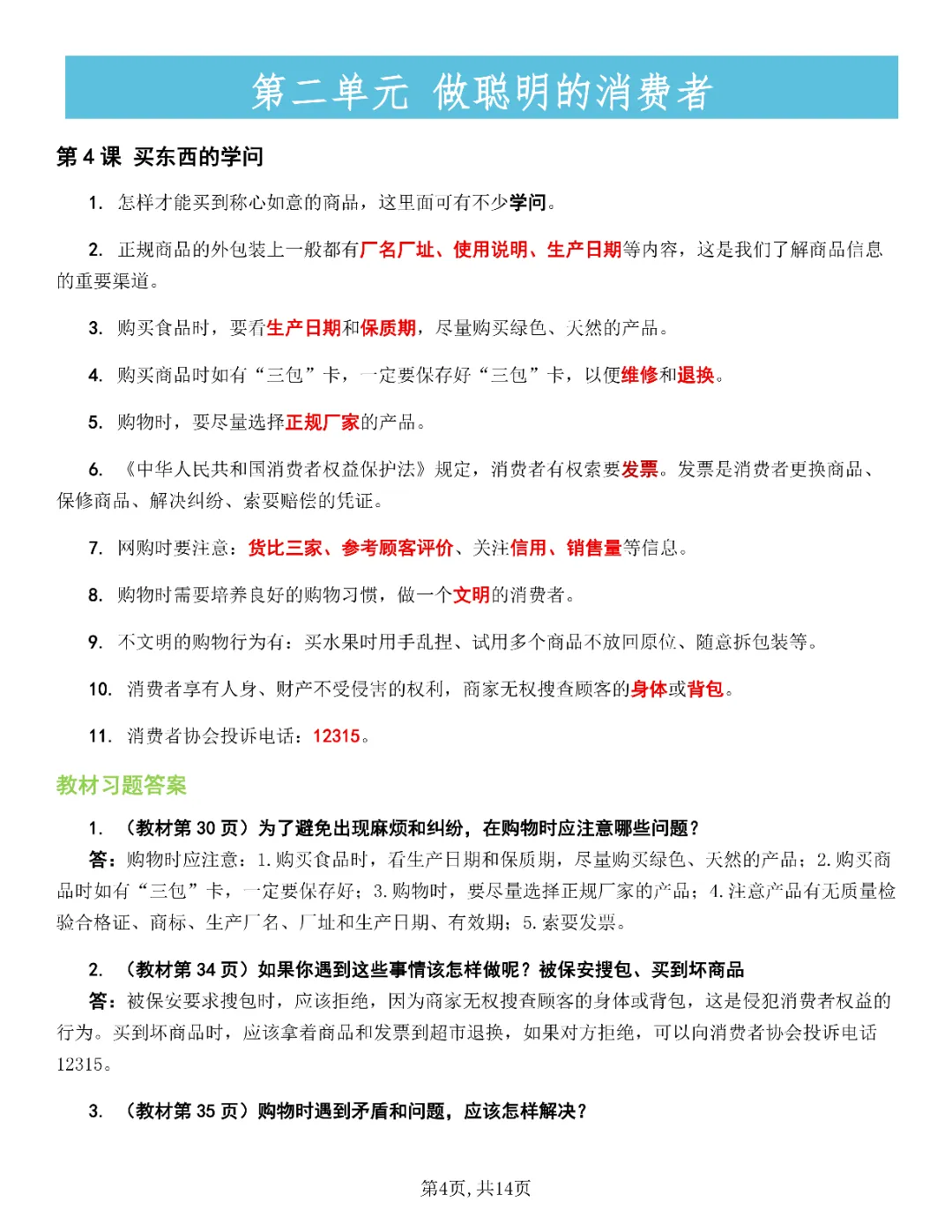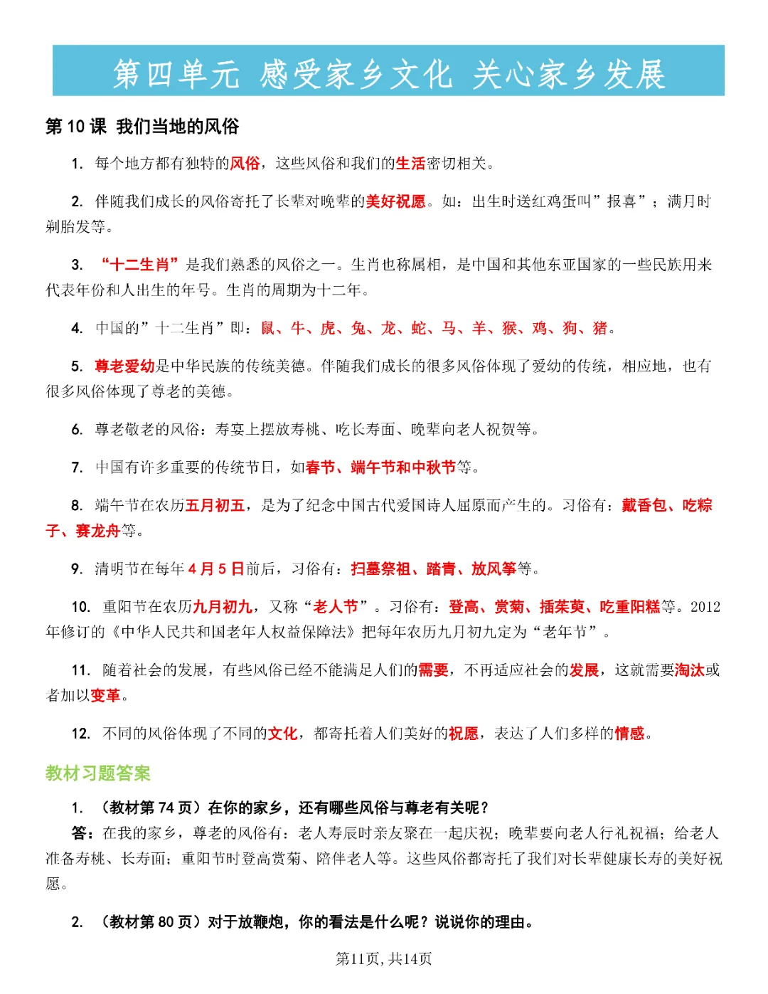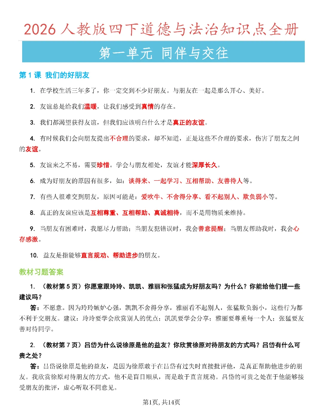 2026年四年级下册道法知识点汇总(电子版可打印)