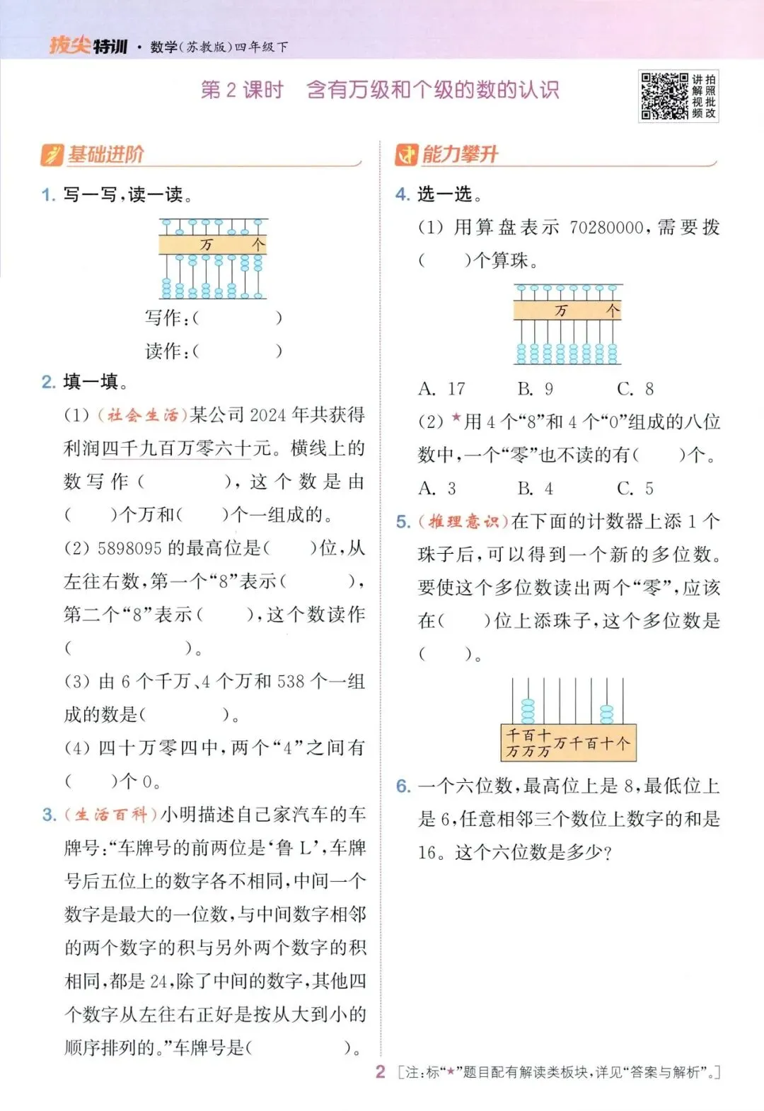 苏教版数学四年级下册《拔尖特训》(可下载)