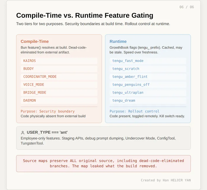 这给开发者带来结构性启示:智能体产品必须搭建双层功能系统,编译期剔除保障安全,运行期开关管控发布,同时构建流程需严格校验发布产物,每次发布前执行npm pack --dry-run。