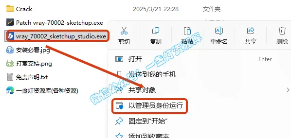 2.选中【vray_70002_sketchup_studio】,右键【以管理员身份运行】