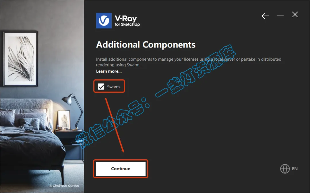 5.取消勾选【Swarm】,点击【Continue】。