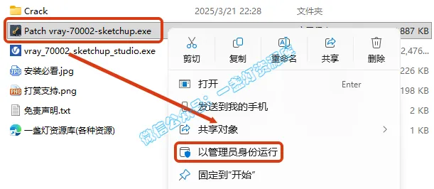 9.选择【Patch vray-70002-sketchup】,右键【以管理员身份运行】