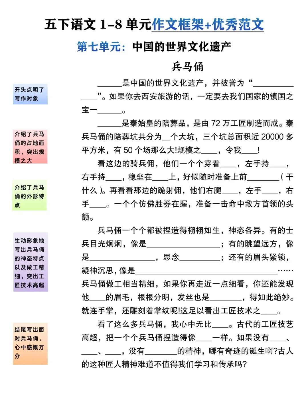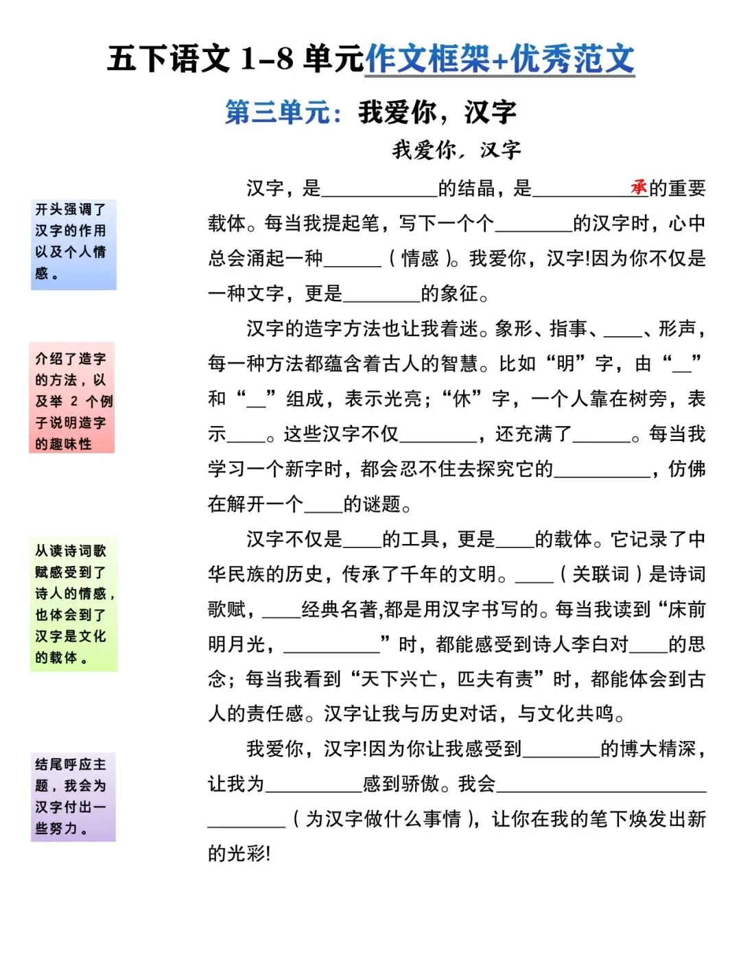 五年级下册作文框架丨可打印