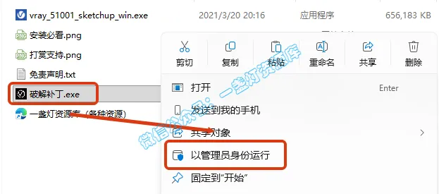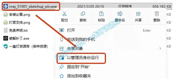 2.选中【vray_51001_sketchup_win】,右键【以管理员身份运行】